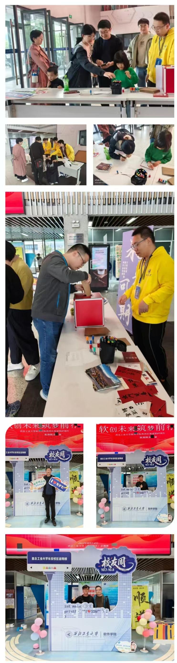活动伊始,系列暖场趣味活动次第开展,唤醒校友校园记忆。“软忆留光”拍照打卡点前,“从软院出发,向未来编码”的标语映照着校友笑容,定格对母校的牵挂;“软园记忆”共享地图旁,校友驻足标记青春坐标——或是通宵调试项目的实验室,或是偶遇挚友的食堂角落,点滴片段汇成软件人专属“情感记忆地图”;“软趣解码”二进制投掷赛、“软笺寄情”未来邮局等活动,让校友暂别职场忙碌,重拾校园鲜活,让久别情谊愈发浓厚。